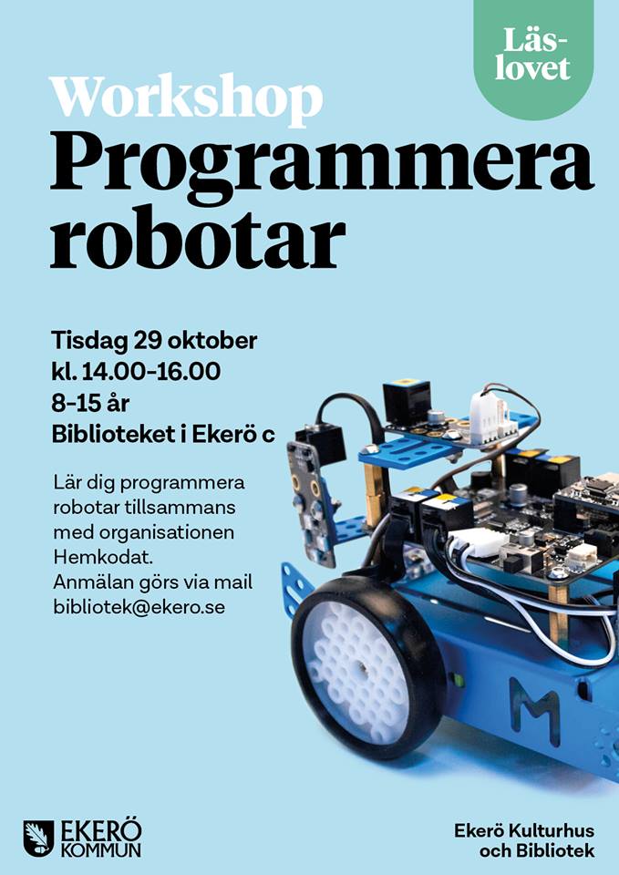 Du missar väl inte chansen att få lära dig att programmera robotar tillsammans med Hemkodat på läslovet!